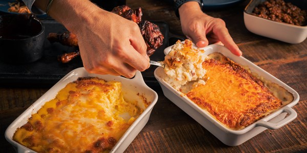 Complete your BBQ feast with Corky's favorite Southern side dishes, prepared with the same care and attention as our famous BBQ. Each tray serves up generous portions of pure comfort food that'll have everyone coming back for seconds. Our creamy macaroni and cheese features perfectly cooked pasta in a rich, cheesy sauce that's been perfected over decades. Alongside it, our twice-baked potato casserole combines fluffy potatoes with all the fixings you'd expect in a twice-baked potato, transformed into a deliciously satisfying casserole form.
